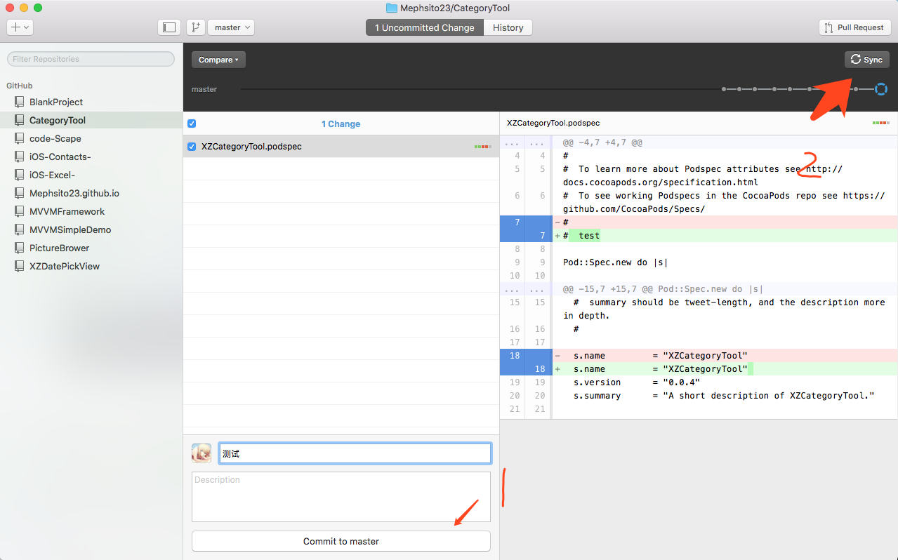 编辑完成以后,将podspec文件提交到 github上,然后开始podspec的验证和提交 trunk.