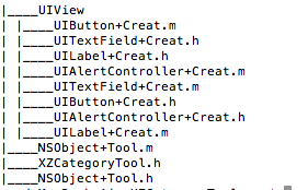 s.source_files的写法,第一次的时候写了好久都不对,验证的时候一直报错,所以在这里单独写一下,首先自己需要分享的文件是根目录XZCategoryTool里面的所有文件,该文件夹下的结构如下: