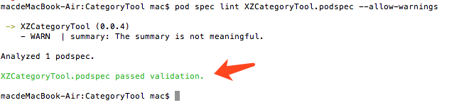 pod spec lint XZCategoryTool.podspec --allow-warnings
