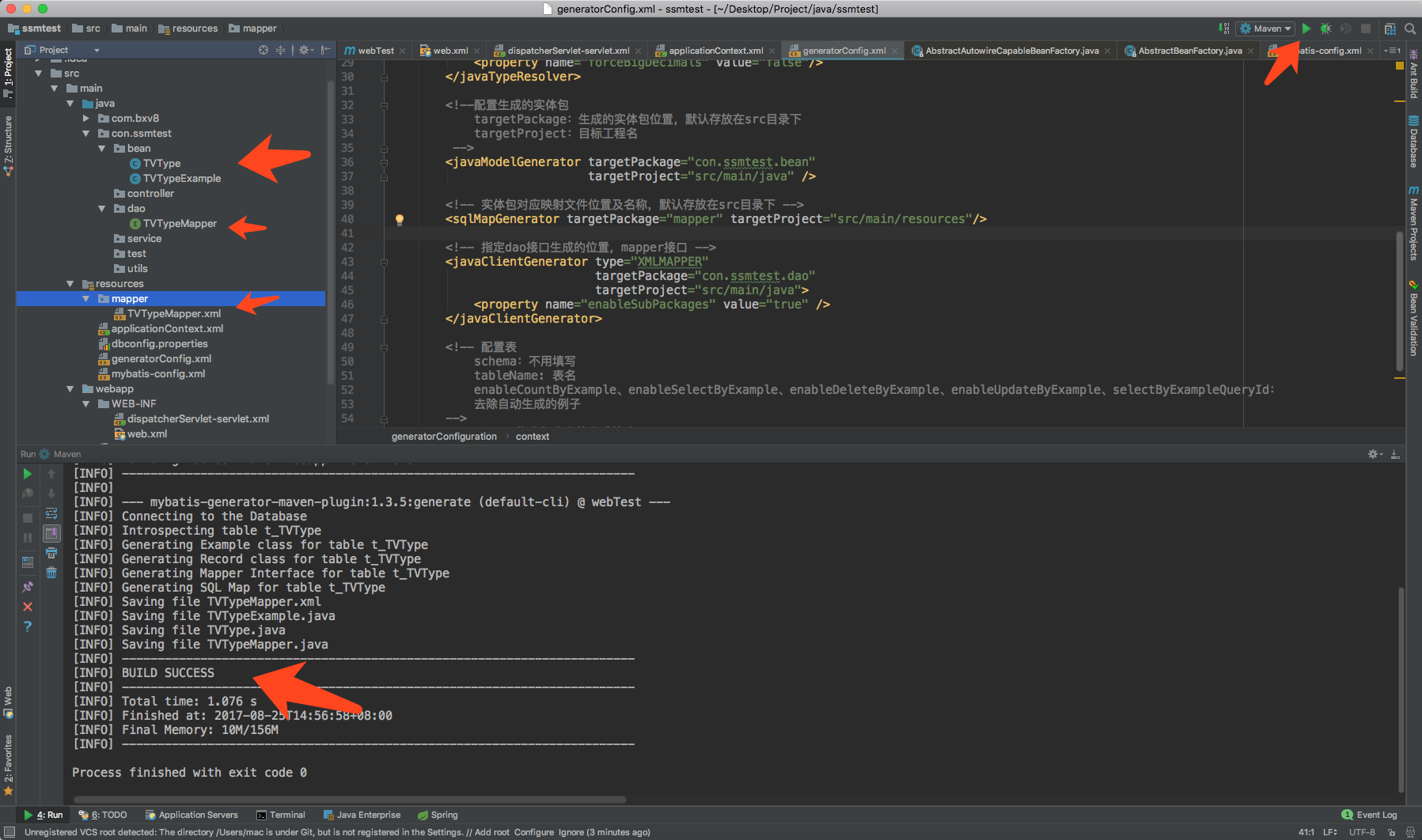 运行, Mybatis 自动创建出 bean,dao,mapper 文件