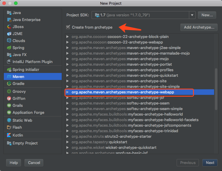 勾选上 Creat from archetype,选择后缀名为 maven-archetype-webapp的项目,如果刚安装 IDEA, 需要在 Project SDK:那配置一下安装的 Java sdk版本.下一步