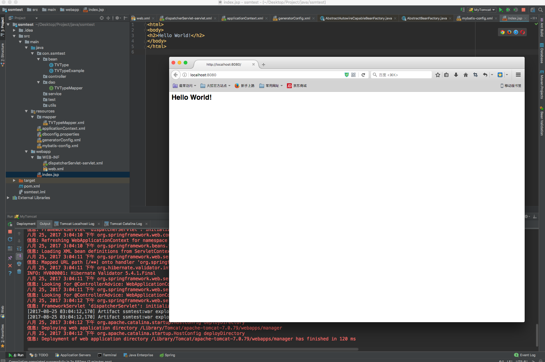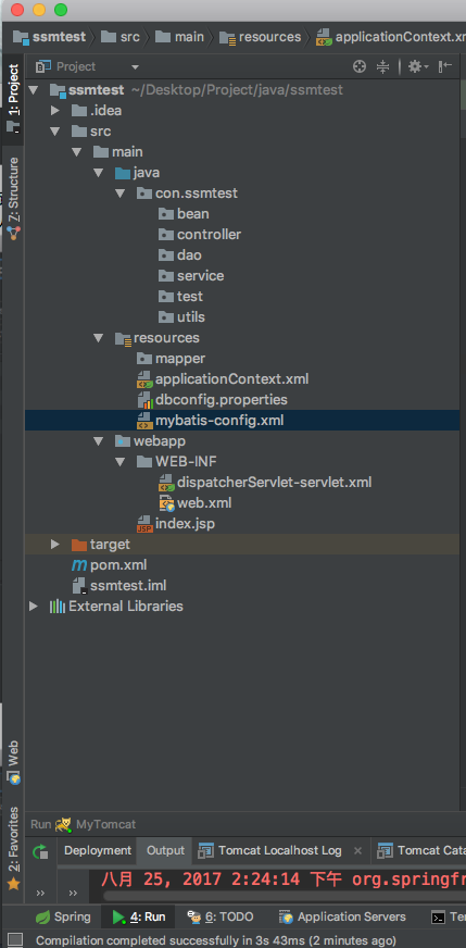 到这里, SSM 框架整合完成,运行 Tomcat,整体项目结构如图: