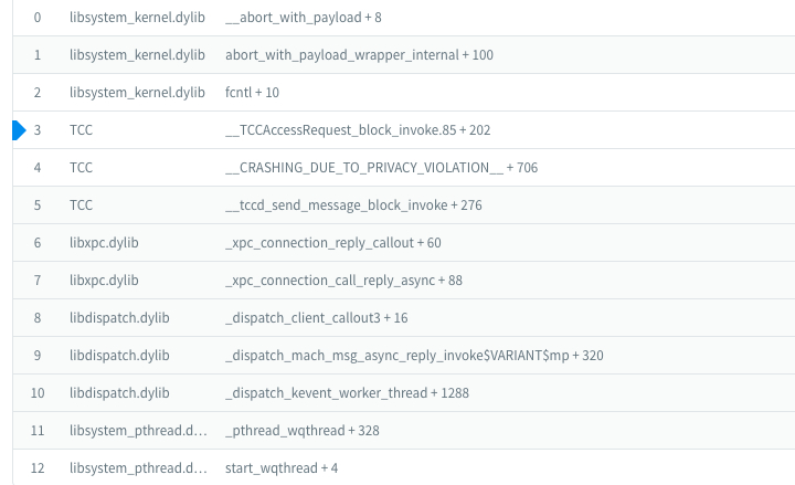 在上线自己的项目后随着用户的增多,有一天我在后台发现了大量的__TCCAccessRequest崩溃 bug,这个 bug在不同的机型,不同的系统里面都可以触发,自己测试了很久都没有找到, bug 堆栈信息如下: